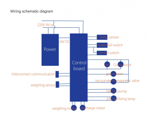 | 3.Compressor fan works, ice making motor does not work | Check whether the PCB board has output voltage and whether the motor is damaged; Check whether the screw is frozen | If the PCB board has no output,the controller needs to be changed. If the motor is damaged replace the motor If the screw is frozen, it is necessary to open the machine to check whether the screw and the cutter is damaged and need to be replaced;if the screw is not damaged and frozen the machine can be operated by electricity. | ||
