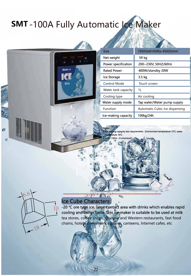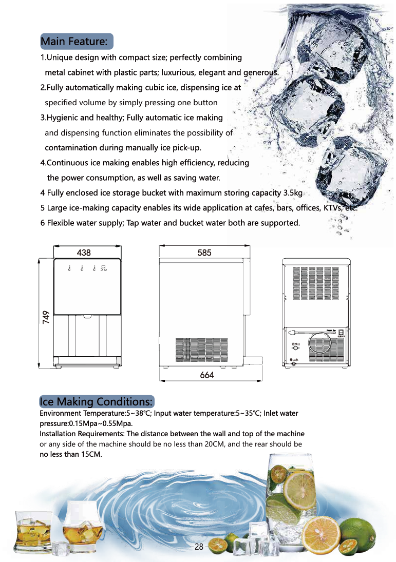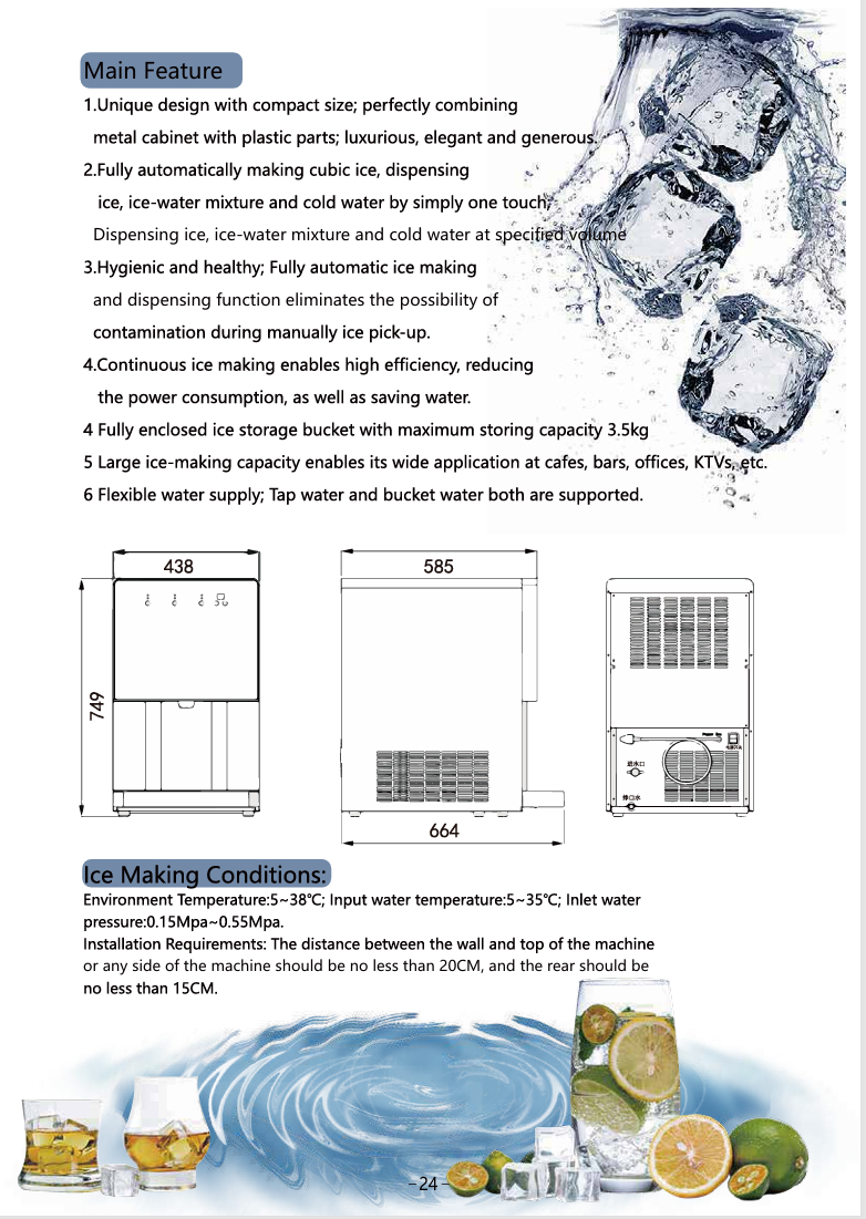 3. Hygienic and healthy; Fully automatic ice making and dispensing function eliminates the possibility of contamination during manually ice pick-up.